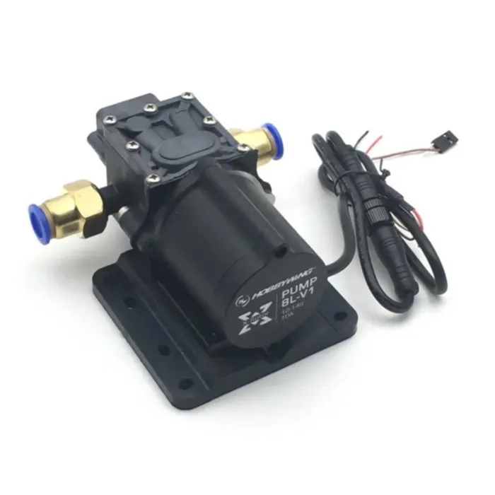 The Hobbywing 8LPM Pump is a high-efficiency brushless liquid pump designed for precision agricultural spraying systems, including drone sprayers. Operating at 12–14.8V with a flow rate of 8 liters per minute, it ensures consistent and reliable performance. Its durable construction, compact design, and low power consumption make it ideal for UAV and robotics applications.